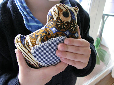 Acabei-o ontem à noite. A maior parte do trabalho foi feita à mão, demoradamente, mas deu-me muito gosto a fazer. Acho que é o primeiro de muitos. E os botões de madeira combinam na perfeição!