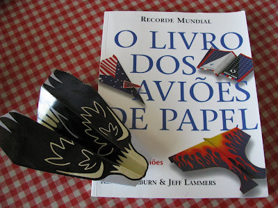O Livro dos Aviões de Papel fala sobre assuntos que definitivamente não fazem parte do meu leque de interesses, como a História do Recorde Mundial dos aviões de papel, noções básicas de aerodinâmica, técnicas de lançamento, etc. mas a ideia de alguém se interessar tanto pelo tema ao ponto de publicar um livro fez com que o tirasse da prateleira da Bertrand. Ao folhear o livro, apaixonei-me. Para além de toda a informação (que é interessante) ensina a fazer 16 modelos diferentes, desde o avião básico do tipo dardo a uma reprodução de um vaivém espacial da NASA, tendo também uma tabela de registo de voo pessoal onde a criança pode registar o tempo de voo, a maior e menor distância, etc. dos vários tipos de avião que construiu. E no fim do livro, aquilo que na realidade me fez compra-lo: dezenas de folhas coloridas em papel de extrema qualidade para construir os 63 aviões prontos a montar.