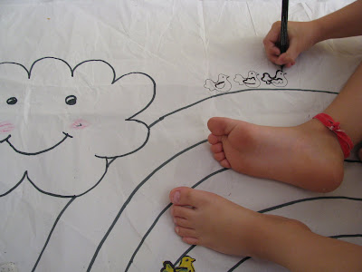 Às mães (e pais) que não sabem como cativar o filho de 7 anos a colorir como quando era mais novo, estendam uma folha grande de papel no chão - vale qualquer folha, de embrulho, de jornal, etc. - ajoelhem-se com ele e deixem-se levar pela imaginação.