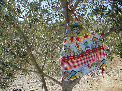 Para criança e adulto, os aventais servem para a cozinha, para os trabalhos manuais, para a jardinagem... Este que fiz para o Miguel ainda está a uso - ontem vestiu-o para fazer um bolo de iogurte. Só não gosta de partir os ovos - de resto, já sabe a receita de cor.