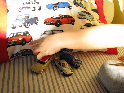 Assim, quando aparece um tecido como este na loja onde a mãe gasta o pouco dinheiro e tempo que tem, não há como não trazer um metro para experimentar. E acertei em cheio - ele adorou. Deixou-me tirar fotografias para o blog depois de lhe prometer que lhe faço outra ainda mais bonita. E sim, está quase pronta. Esta, vai para aqui. Talvez hajam mais meninos por aí a precisar de uma almofada grande, fofa, cheia de carrinhos coloridos, feita com carinho e muito gosto.