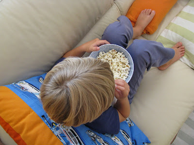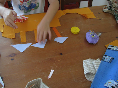Ele ajudou a fazer a almofada, à sua maneira. Deixei-o comandar o pedal da máquina de costura, a verdadeira cereja no topo do bolo para qualquer rapazinho de 7 anos menos 4 dias, filho de mãe crafty.