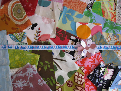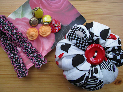 Capulanas e um saco de arroz reciclado pela Vera, juntamente com uns chocolates deliciosos que já não são possíveis de fotografar. Retalhos, botões, rendas, crochet - tudo empacotado com gosto da Sofia.