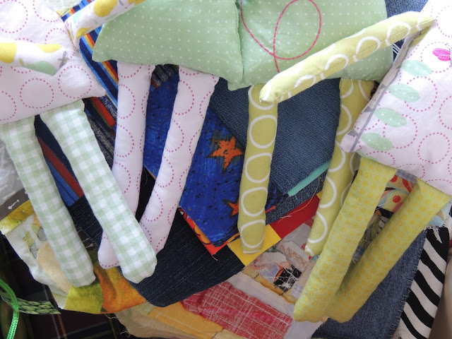 Por aqui, tenho passado os dias a fazer bonecos de pano e mantas de retalhos para dar a quem mais necessita. Pelo menos é assim que vejo o que estou a fazer. Fez-me muito feliz ter filhos, marido e tia a ajudar. São trabalhos simples, muito diferentes dos que costumo fazer, porque desta vez o meu objectivo é chegar ao maior número possível de pessoas.